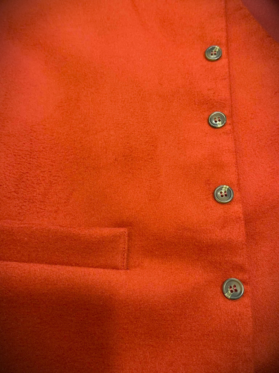 100% cotton red waistcoat with satin red back lining.